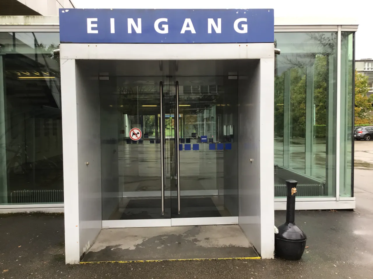 Haupteingang, Flügeltür danach folgt eine baugleiche Windfangtür