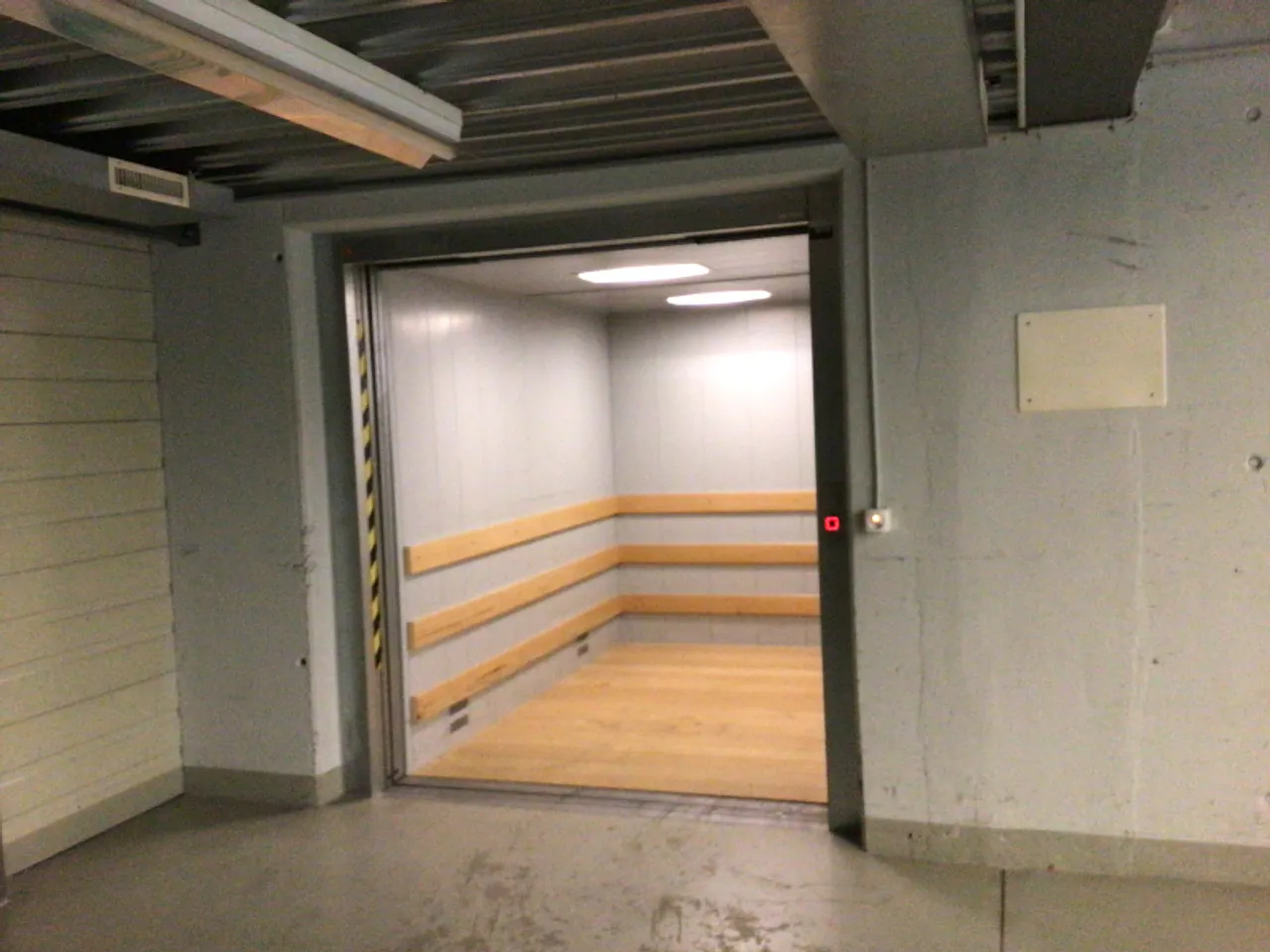 Aufzug vom EG zum Spielfeld und den Umkleideräumen im UG