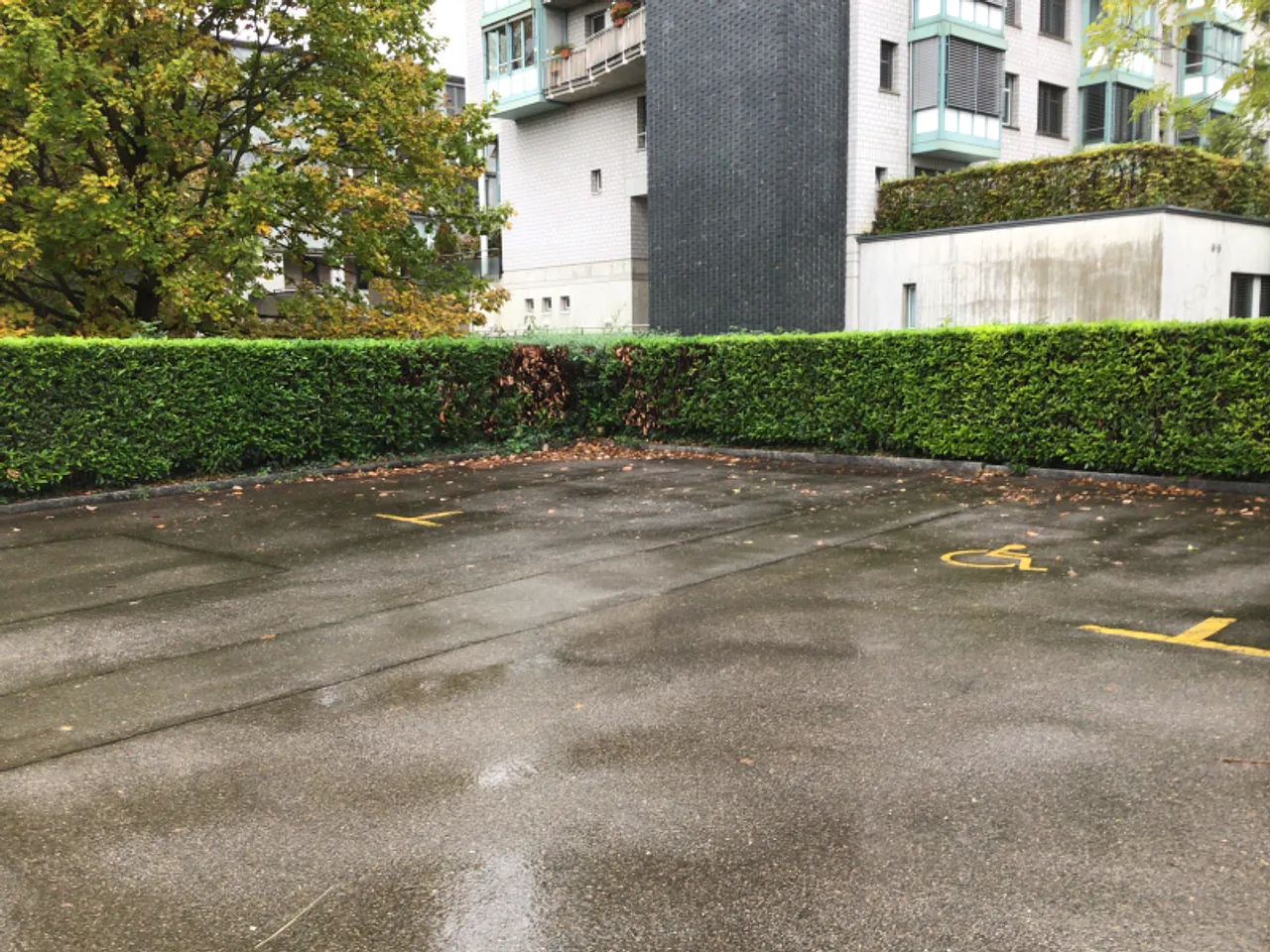 Rollstuhlgängiger Parkplatz. 20 Meter bis zum Eingang